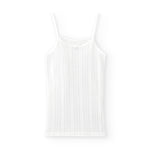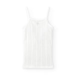 Camiseta interior de tirantes. Canalé calado en color blanco. Tejido suave de algodón orgánico con detalle de lacito en el escote. Diseño cómodo y transpirable, ideal para uso diario.