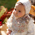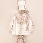 Conjunto bebé niña cuadros y flores con vestido, capota y braguita | Cocote x Charanga