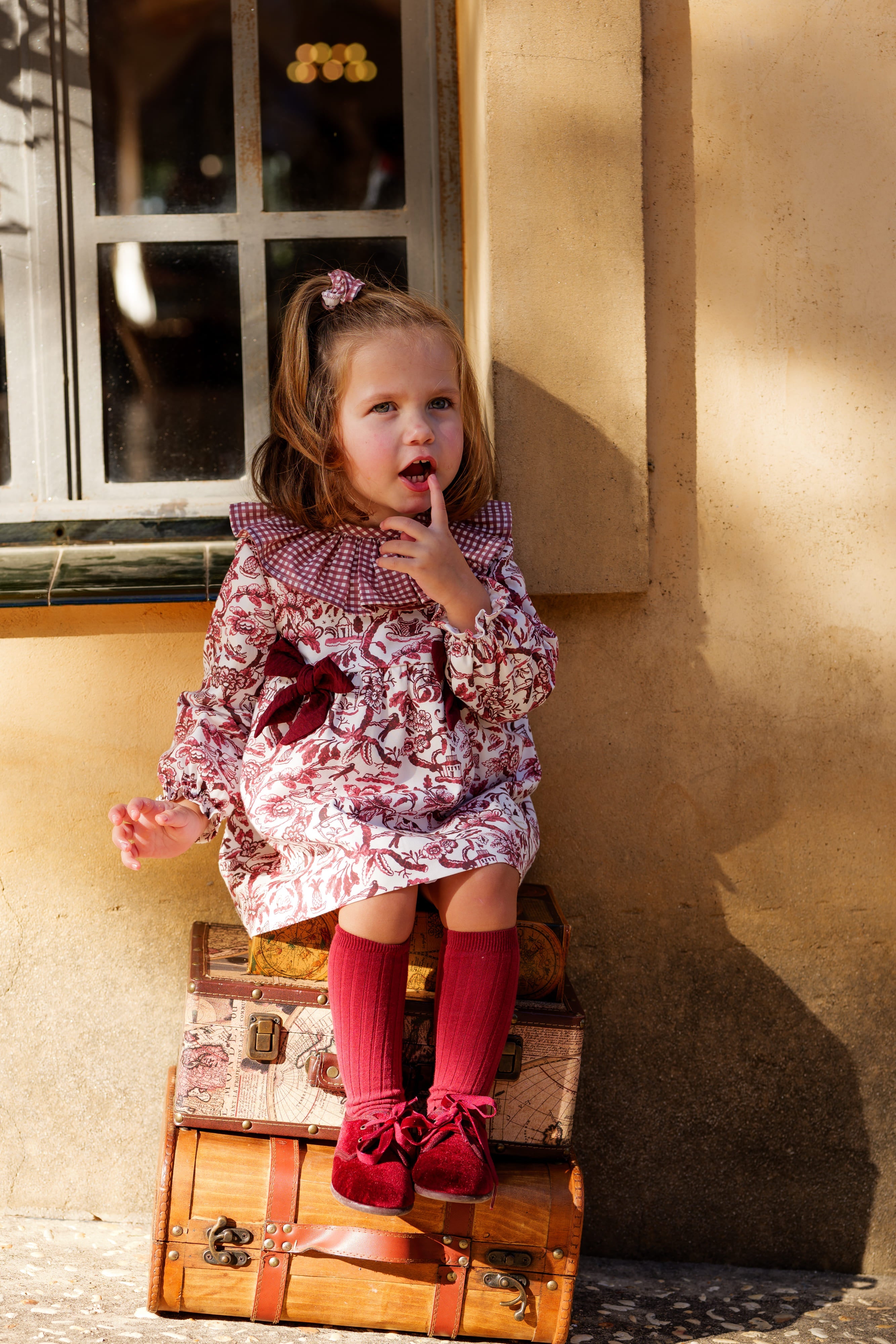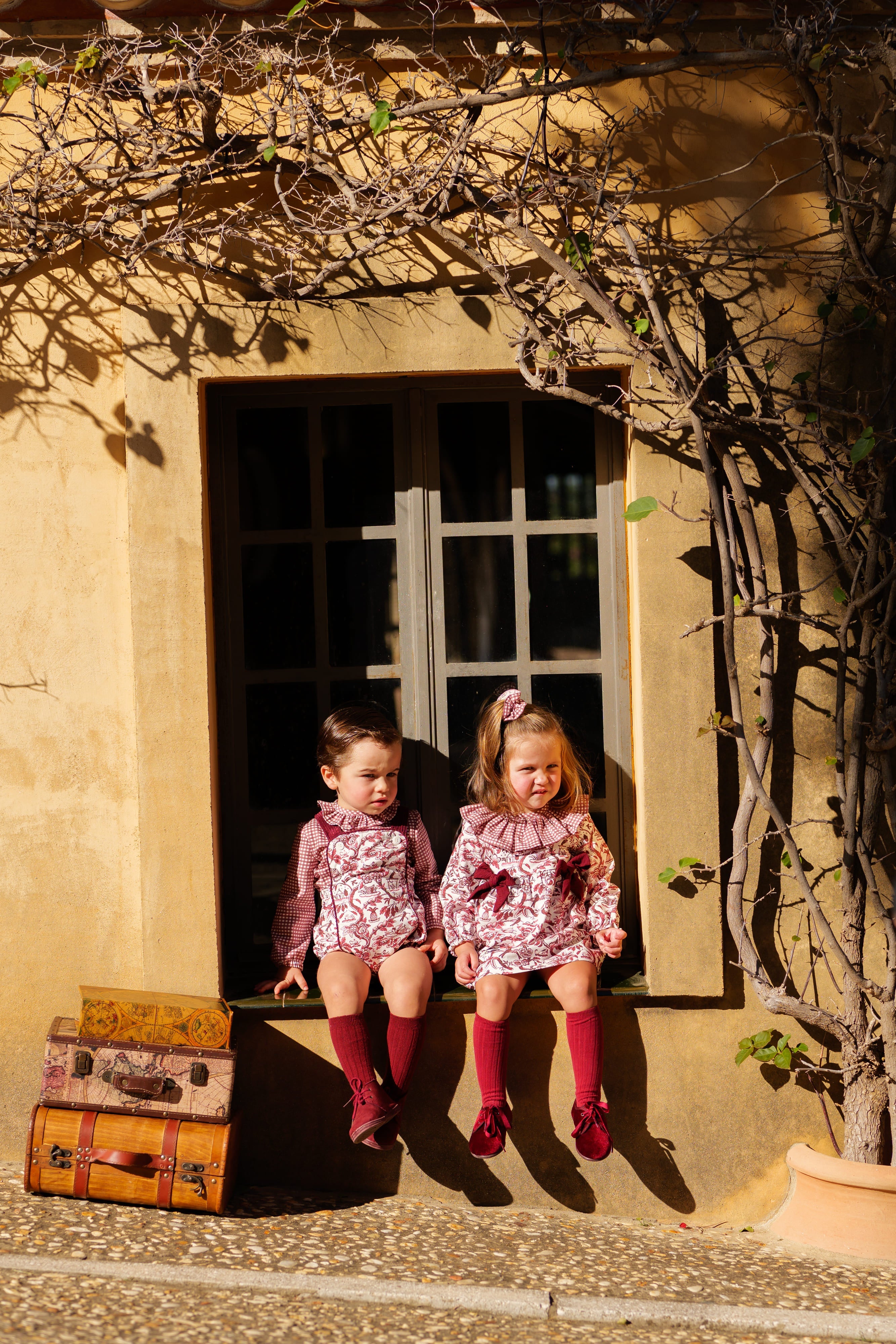 Conjunto de bebé vestido con braguita cuadros burdeos | Cocote x Charanga
