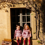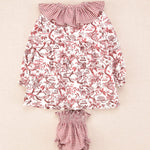 Conjunto de bebé perteneciente a la colección Cocote x Charanga, compuesto por vestido estampado de estilo clásico y braguita a juego. Una opción elegante y delicada para ocasiones especiales.