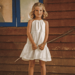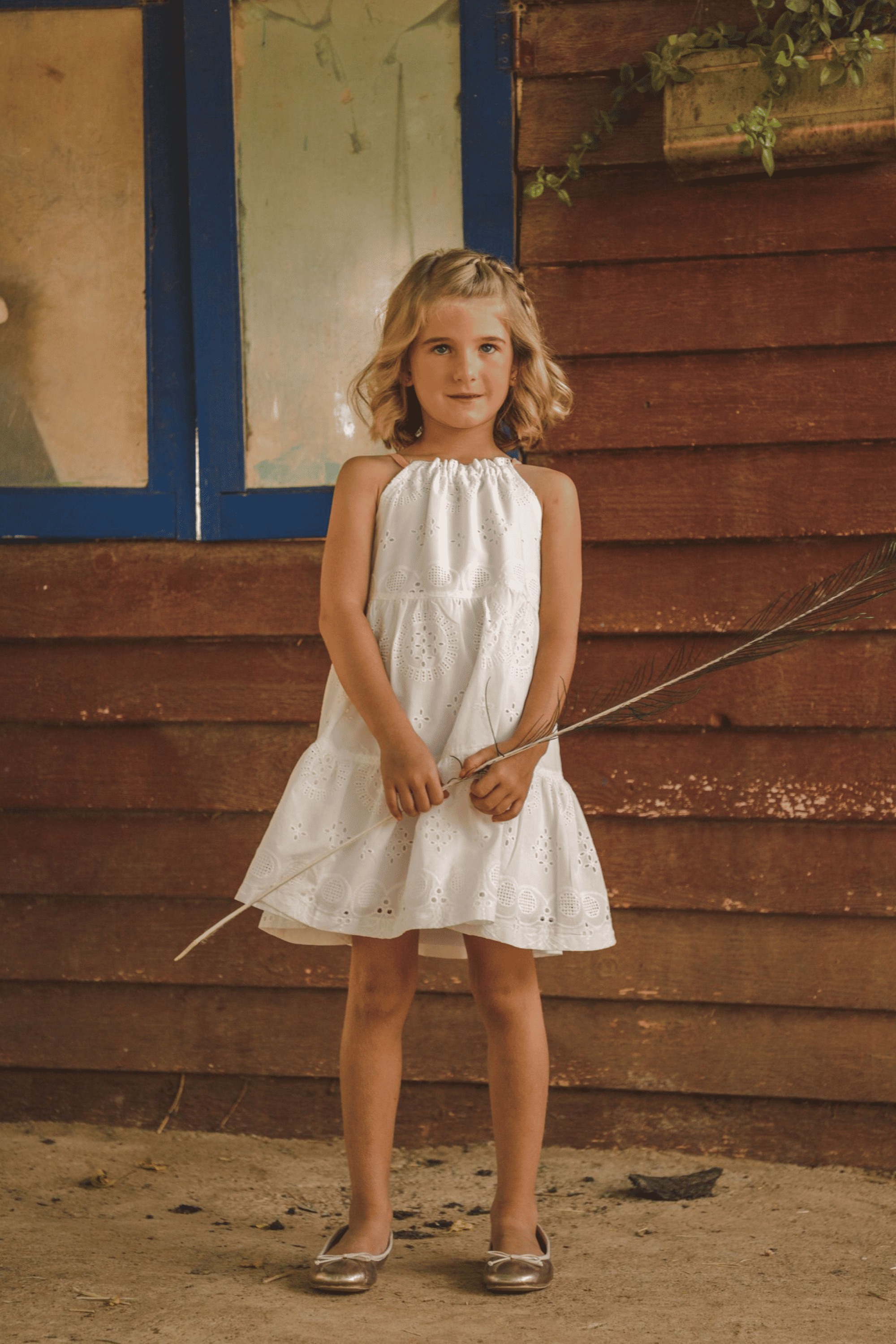 The girl's dress in nude color is an elegant and versatile garment for any occasion. Made with high quality materials, its classic and simple design adapts perfectly to your little one's body, providing comfort and style at the same time.