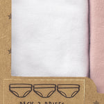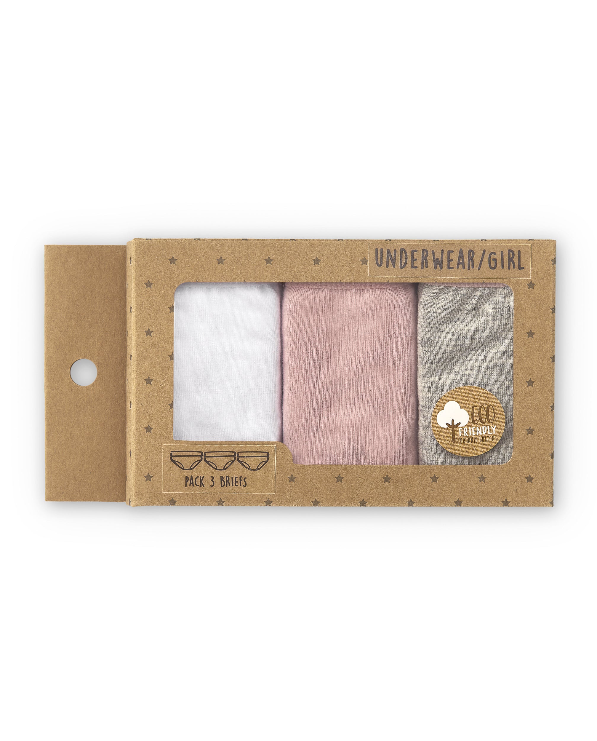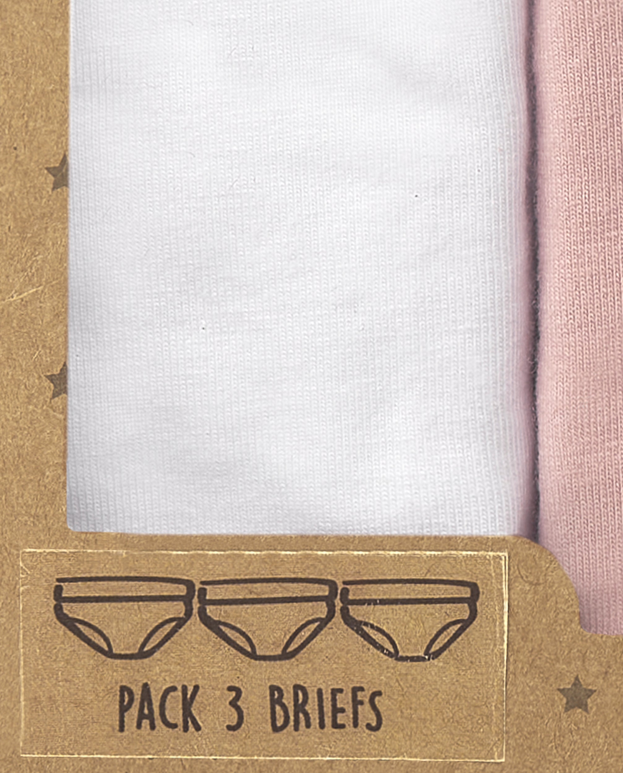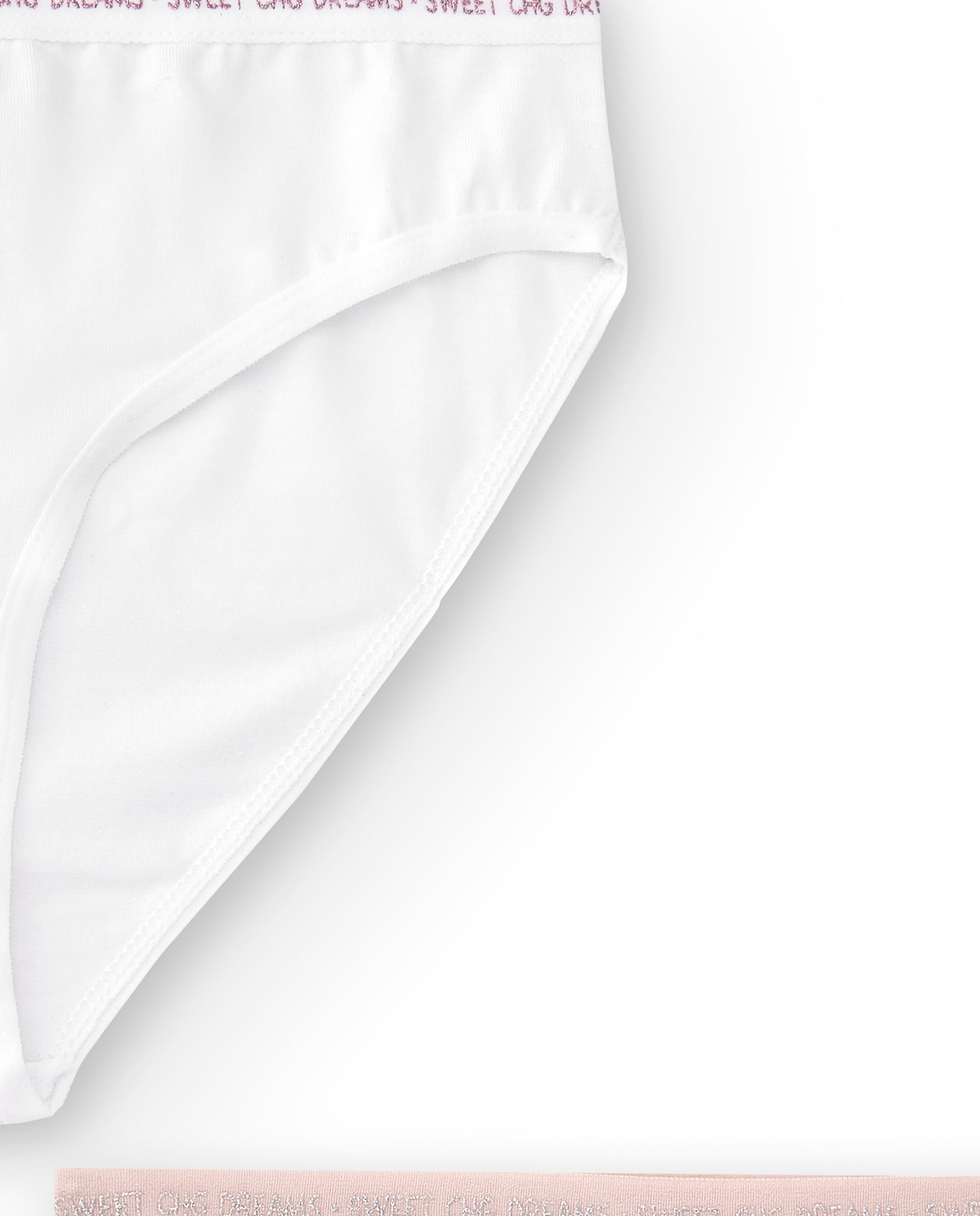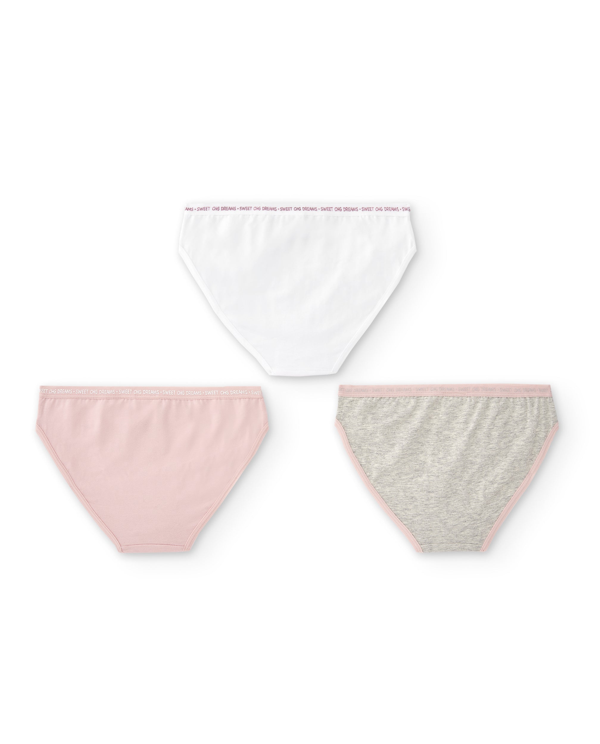 Pack de tres braguitas de algodón en tonos blanco, rosa y gris jaspeado. Cintura elástica con detalle de texto "Sweet Dreams". Acabado cómodo y suave.