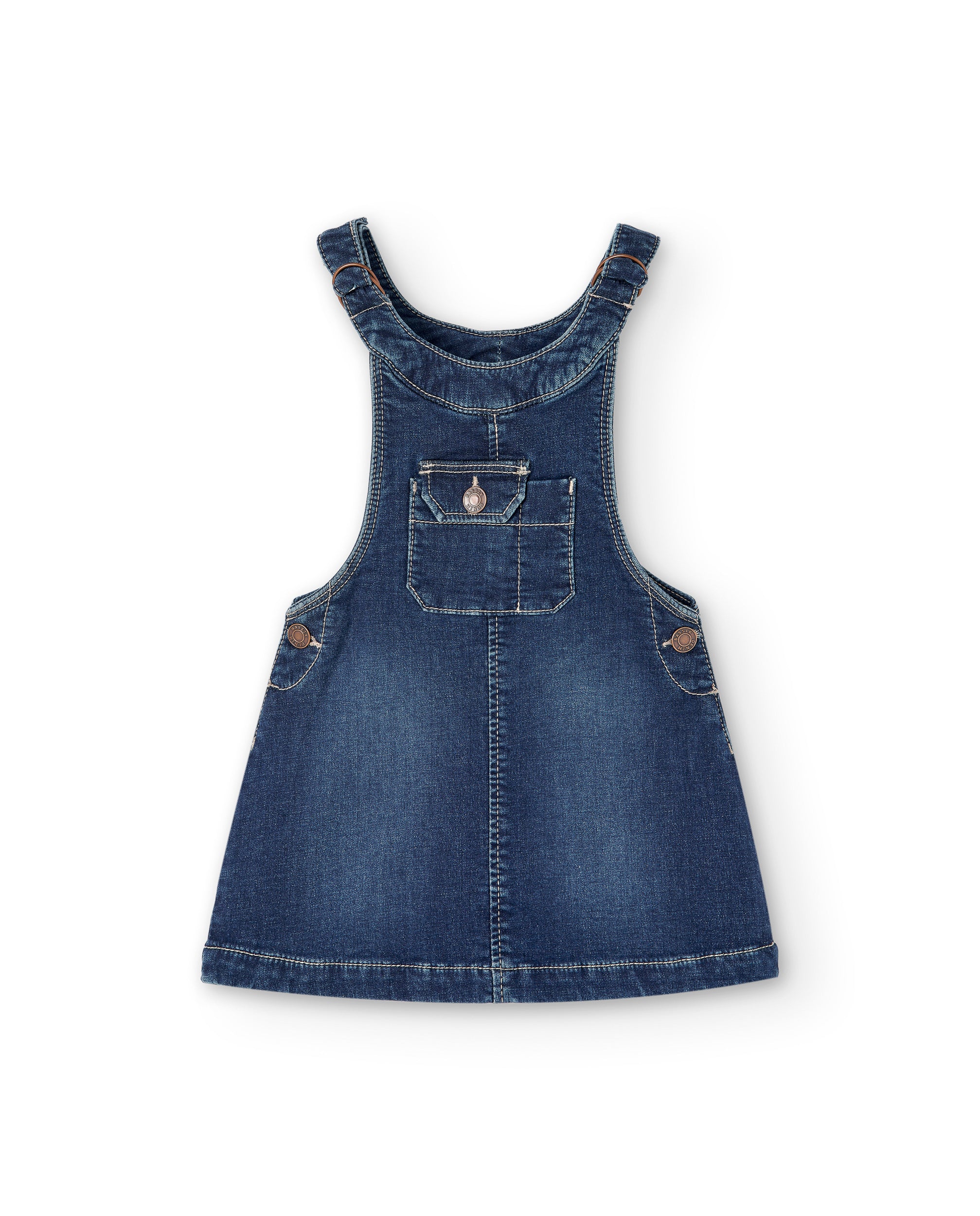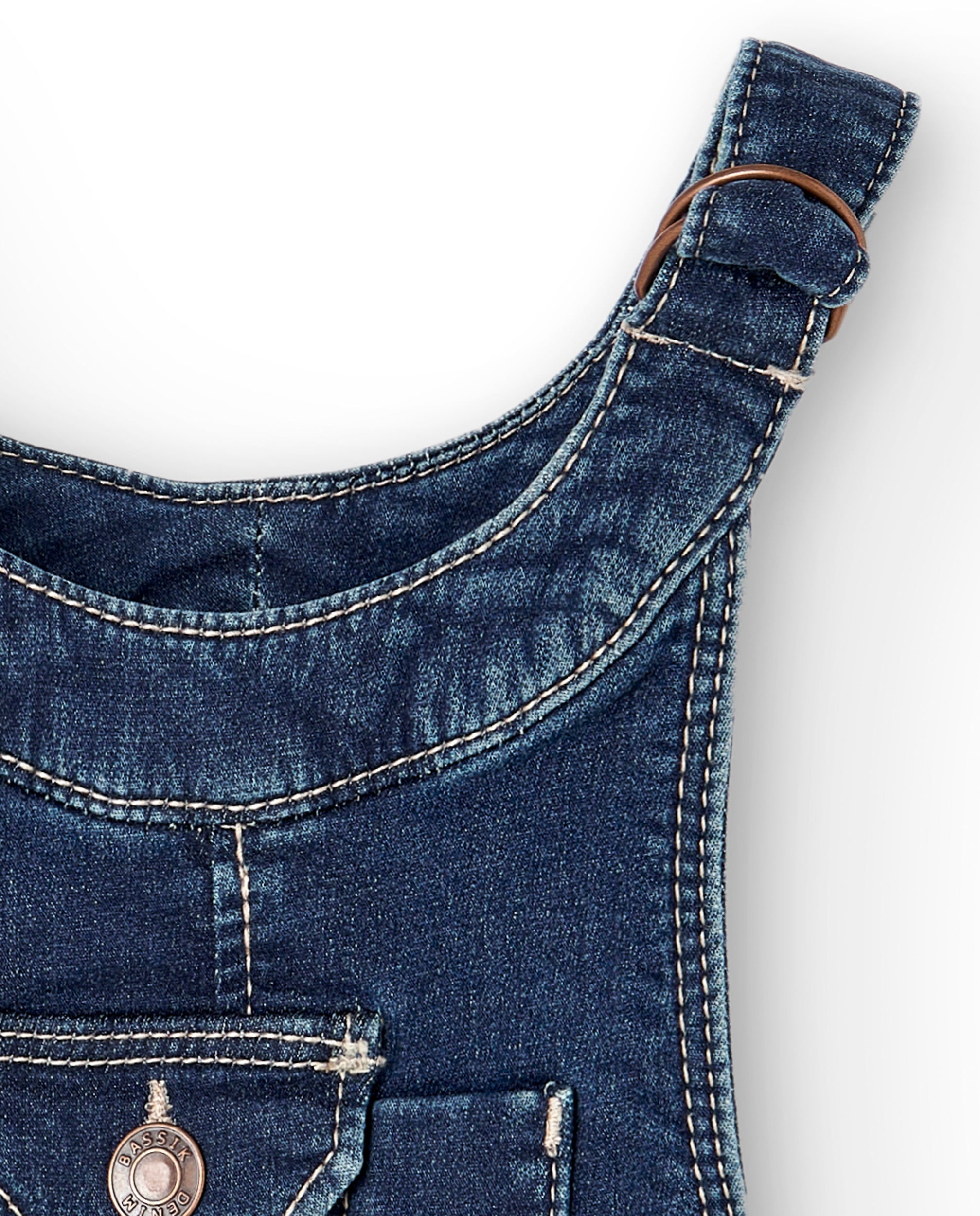Vestido de bebé Bassik Denim, algodón resistente con un toque elástico para mayor comodidad. Diseño versátil y actual para cualquier ocasión.