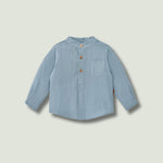 Camisa de niño con mangas de la colección Cocote & Charanga es ideal para ocasiones especiales. Está confeccionada con botones y tiene un color azul turquesa que le da un toque moderno y elegante. Ofrece máximo confort al niño.