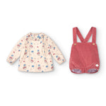 Elegante conjunto de la colección Cocote & Charanga de bebé perfecto para el invierno. Con su precioso tono naranja rojizo y una blusa blanca con estampado de figuras, tu bebé se verá irresistible. Diseñado para mantenerlo caliente y cómodo todo el día.
