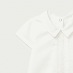 Body para recién nacido en lino y punto crudo, suave y transpirable. Cuello delicado y cierre con corchetes para facilitar el cambio. Prenda cómoda y elegante para el día a día.