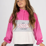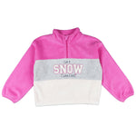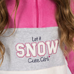 Sudadera polar para niña en color fucsia con diseño tricolor y detalle bordado Let it Snow – Cute Girls en el pecho.