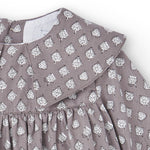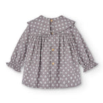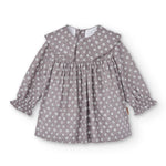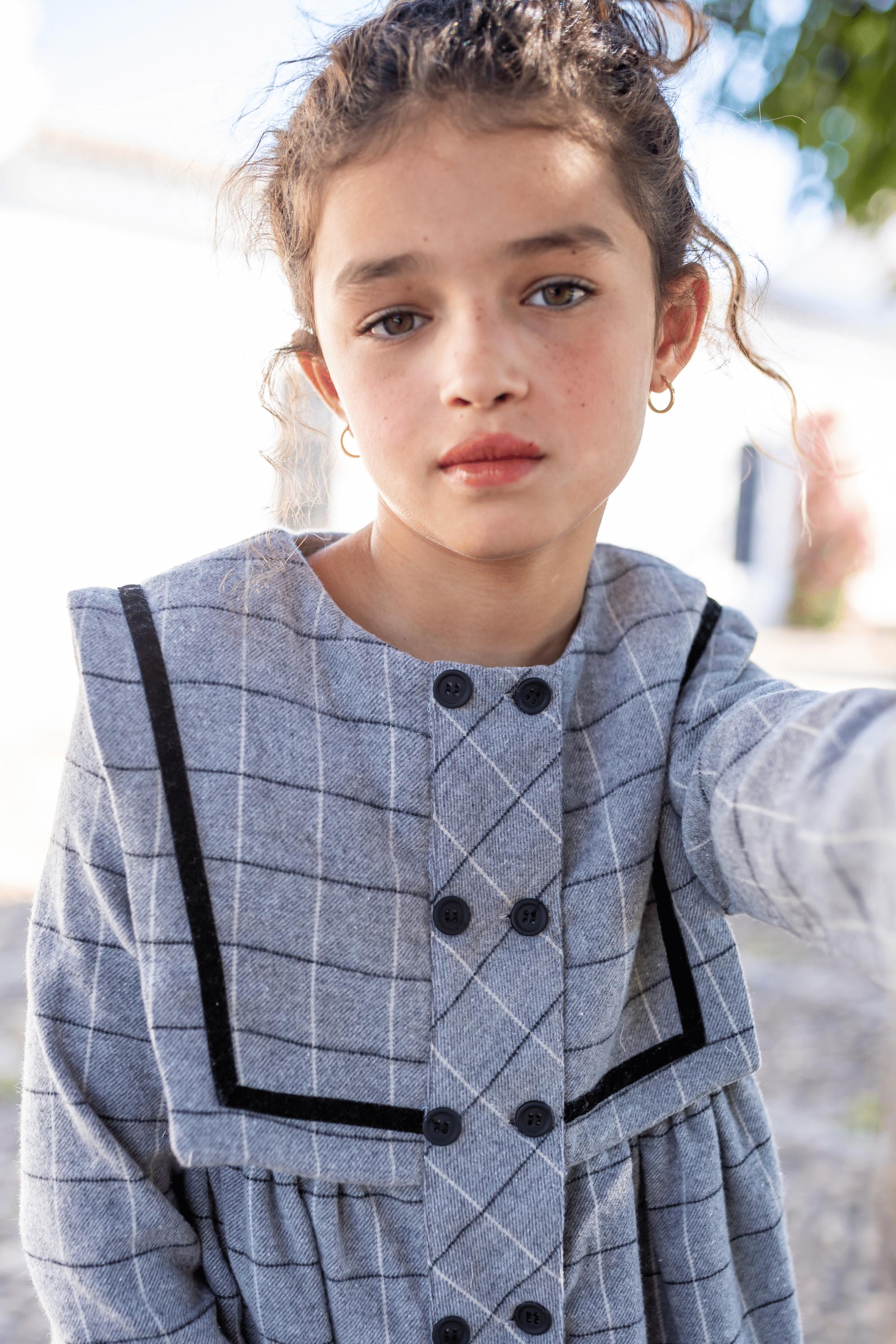 Lleva a tu pequeña al mundo de la moda con este delicado vestido gris de la colección Cocote & Charanga. El sutil diseño con volantes en la parte superior le aporta romanticismo.