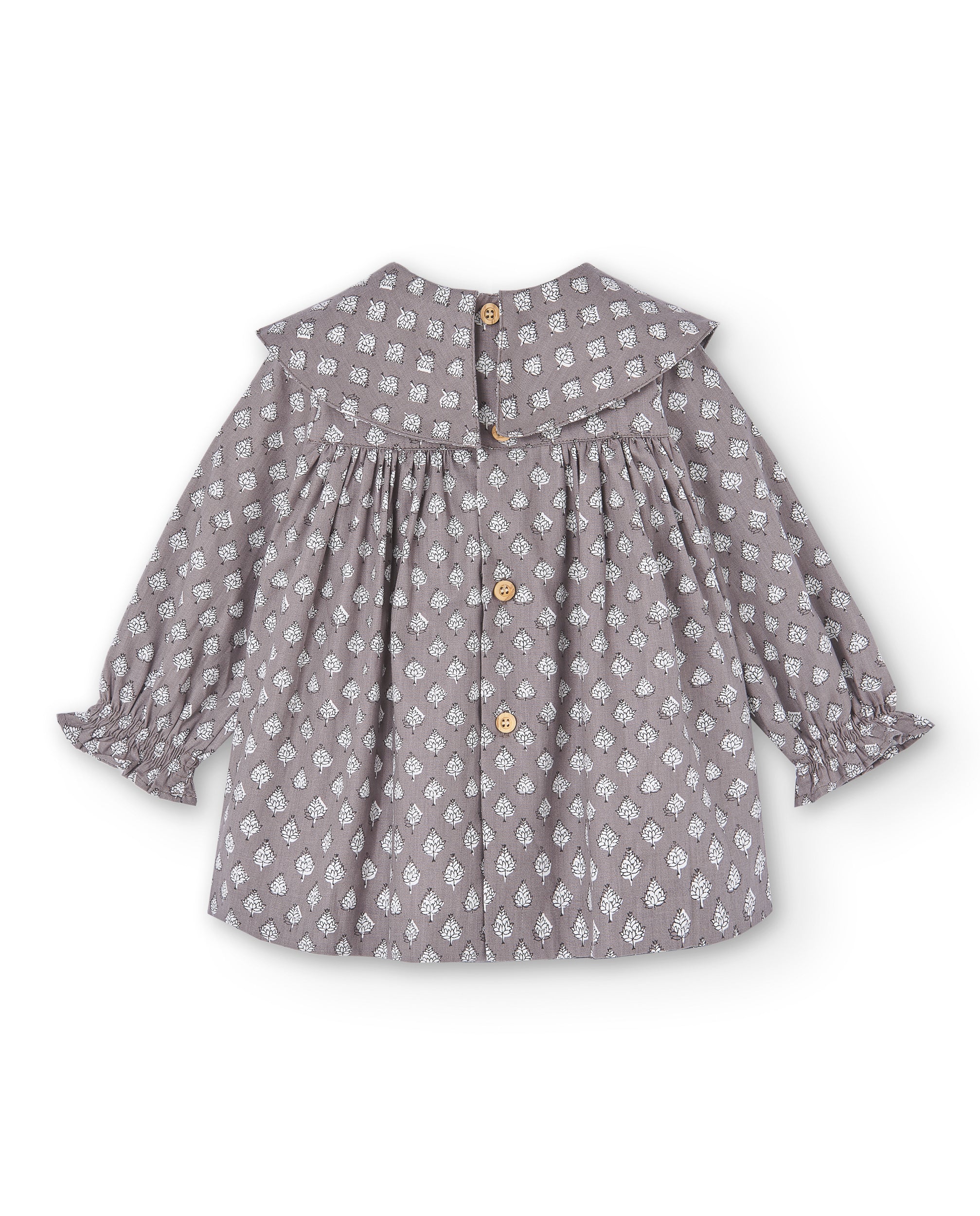 ¡Vestido de ensueño para tu niña! Un color gris sofisticado con un estampado para adornar su look de la colección Cocote & Charanga. ¡Es el vestido perfecto para un momento especial!