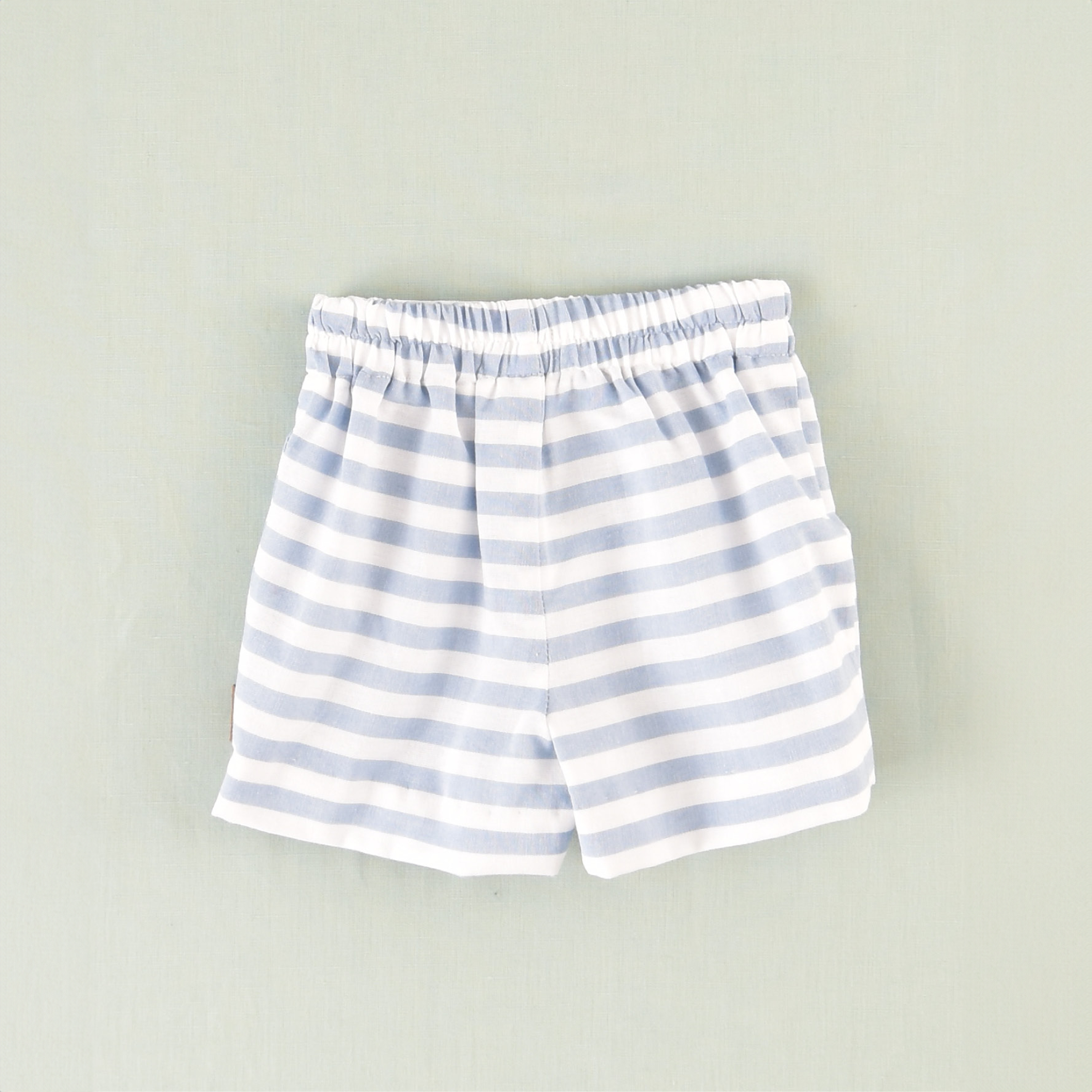 Pantalón corto niño de rayas azul marino con cintura elástica ajustable. Diseño casual y cómodo, ideal para el verano. Perfecto para combinar con camisetas y polos. Tallas disponibles.
