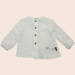 Blusa de bebé en color blanco con textura plumeti y botones de madera, perteneciente a la colección Cocote x Charanga. Una prenda cómoda y versátil, pensada para ocasiones especiales y para combinar fácilmente con otras piezas de la colección. Su diseño la convierte en una opción práctica y elegante para vestir tanto a niño como a niña con un estilo cuidado y atemporal.