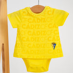 Viste a tu bebé con el espíritu del Cádiz CF con este body amarillo de manga corta. Confeccionado en tejido suave y transpirable, es perfecto para mantener a tu pequeño cómodo durante todo el día.