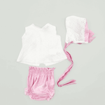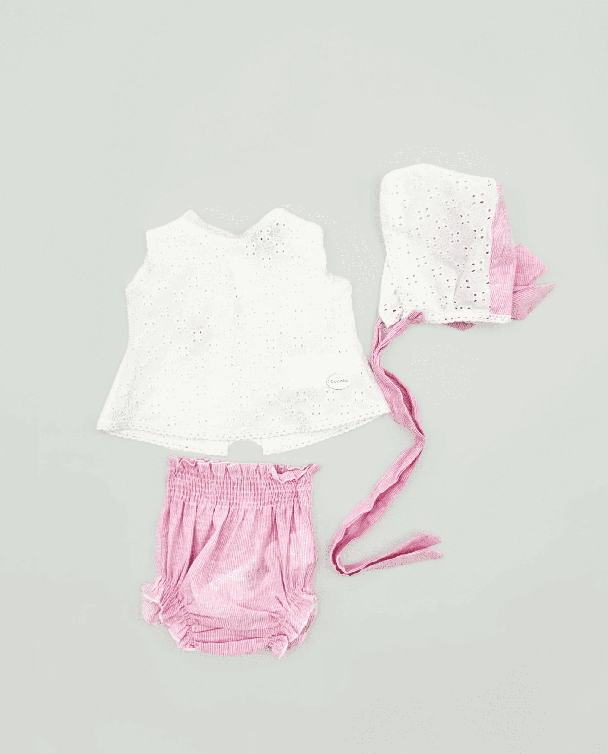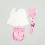 Conjunto vestido, braguita y capota bordado rosa recién nacida | Cocote by Charanga