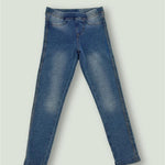 Legging vaquero para niña confeccionado en tejido denim elástico, que combina la apariencia de un pantalón vaquero con la comodidad de un legging.