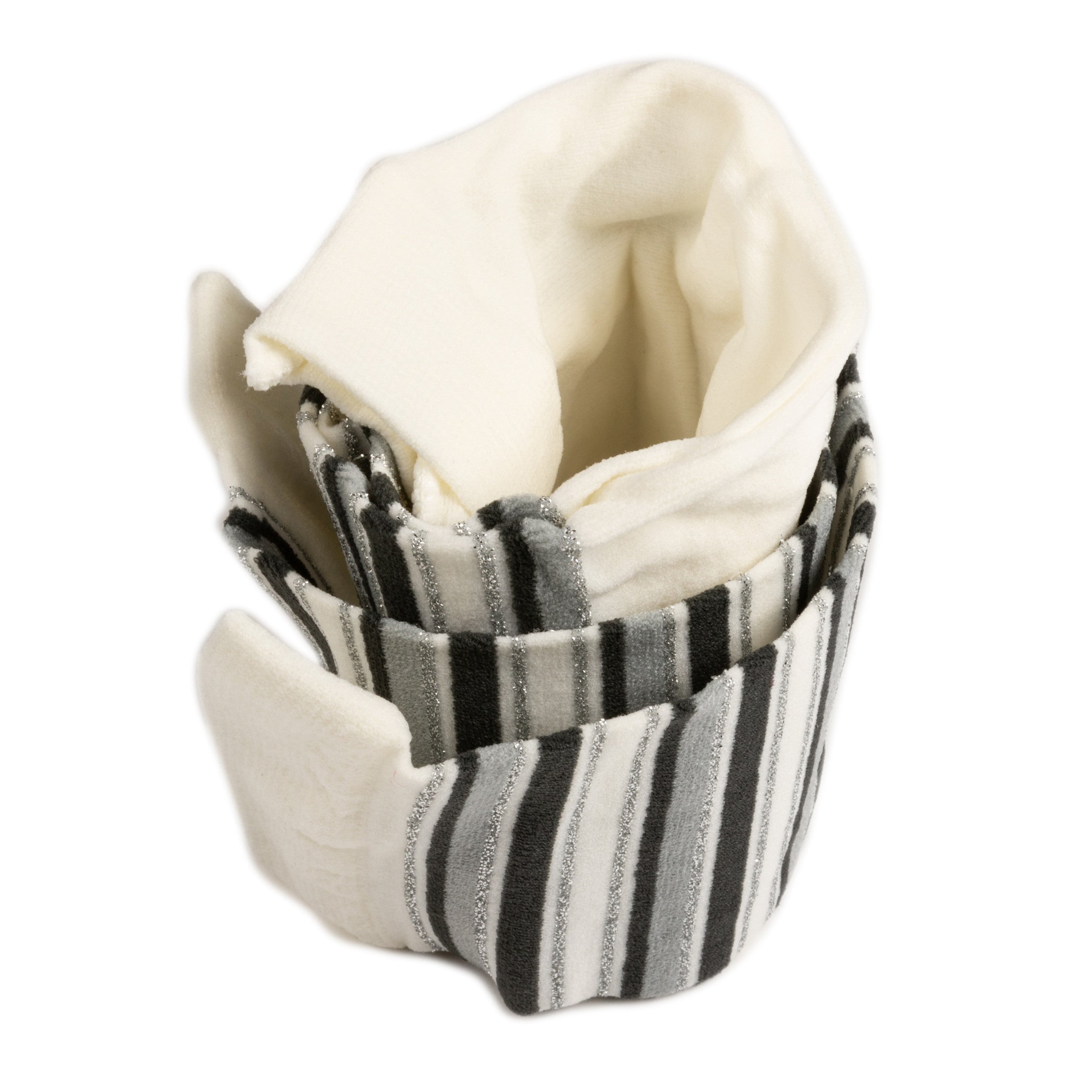 Añade un toque cómodo y estiloso a sus looks con estos leotardos de rayas en tonos gris y crema. El tejido es suave al tacto y elástico para acompañar sus movimientos, con cintura cómoda que no aprieta. Las finas líneas con ligero brillo aportan un detalle especial que queda genial con vestidos, faldas o ranitas.