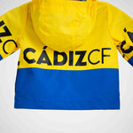 Cuenta con capucha ajustable y cierre de cremallera frontal para mayor comodidad. Además, destaca el escudo oficial del Cádiz CF en el pecho y el nombre del equipo en la parte frontal y las mangas, reafirmando el espíritu cadista en cada detalle.
