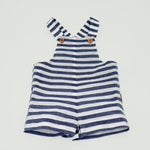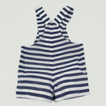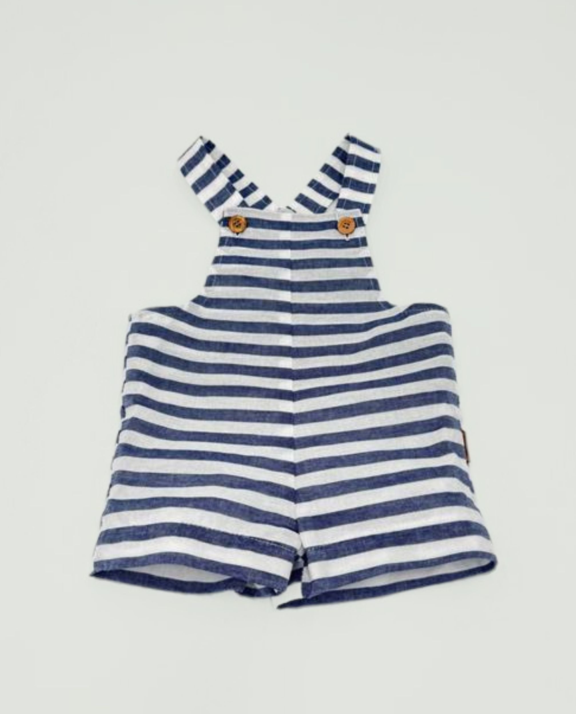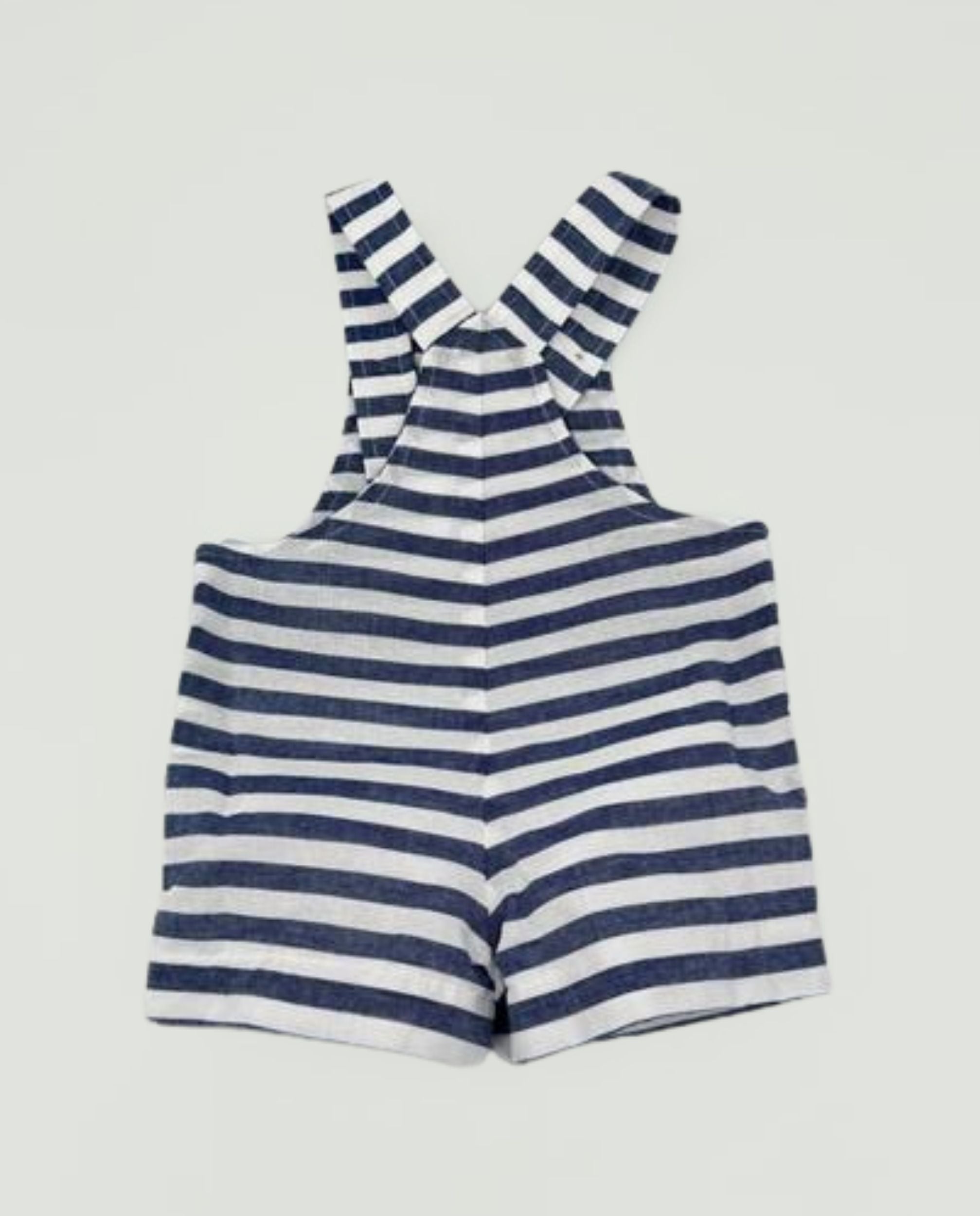 Peto de rayas azul marino y blanco para niño con un diseño cómodo para el día a día. Confeccionado en algodón suave y transpirable, ideal para los días cálidos. Disponible en tallas de 1 a 4 años.