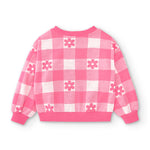 Jersey niña vichy rosa con flores, punto suave y cómodo. Diseño de cuadros tipo vichy en rosa y crudo con flores jacquard a contraste, corte cómodo y cuello redondo. Acabados de canalé en cuello, puños y bajo para un ajuste perfecto; manga larga con ligero volumen para un look actual. Ideal para combinar con vaqueros o leggings en el día a día.